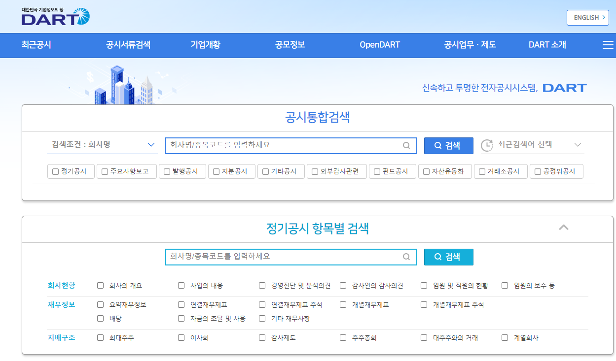 ① 전자공시시스템(DART)의 공식 홈페이지에 접속합니다.