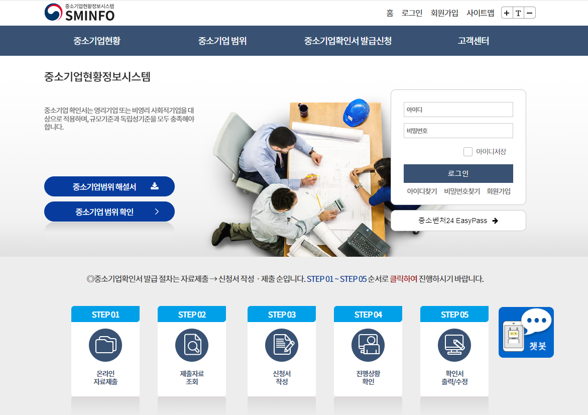 ① 중소기업 현황 정보시스템의 공식 홈페이지에 접속합니다.