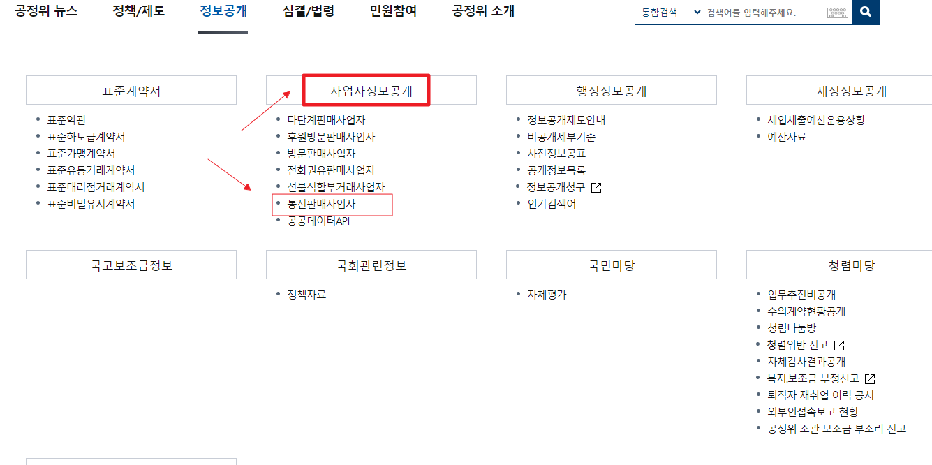 ④ '통신 판매 사업자' 카테고리를 선택합니다.