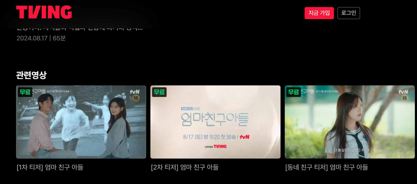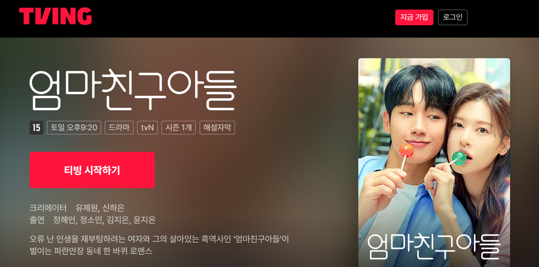 티빙 드라마 엄마친구아들 소개