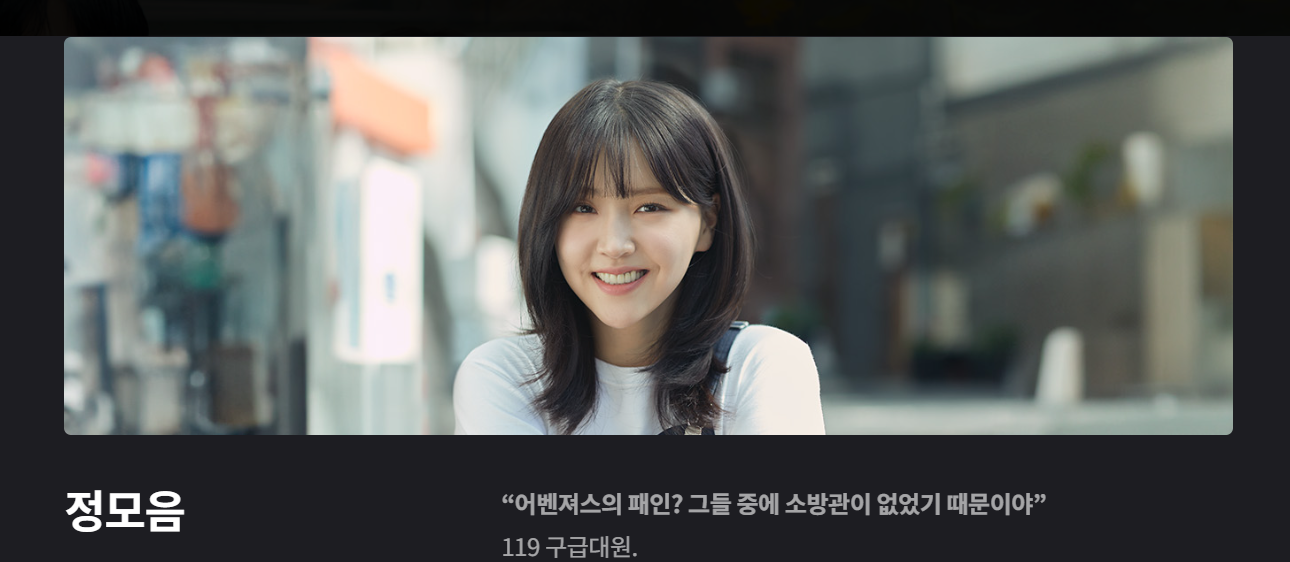 | 정모음 | 김지은 | 히어로 DNA를 믿는 119 구급대원 |