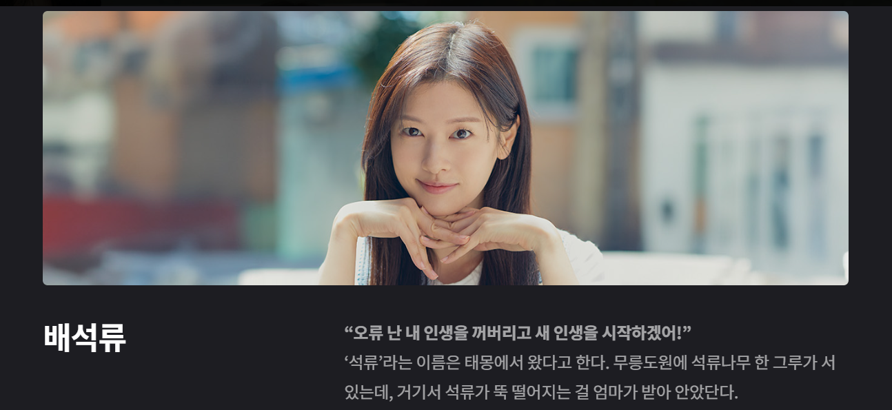 | 배석류 | 정소민 | 인생 재부팅을 꿈꾸는 글로벌 대기업 프로덕트 매니저 |