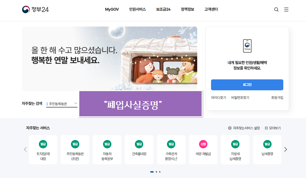 폐업사실증명원 온라인 발급 방법 3. - 정부24 온라인