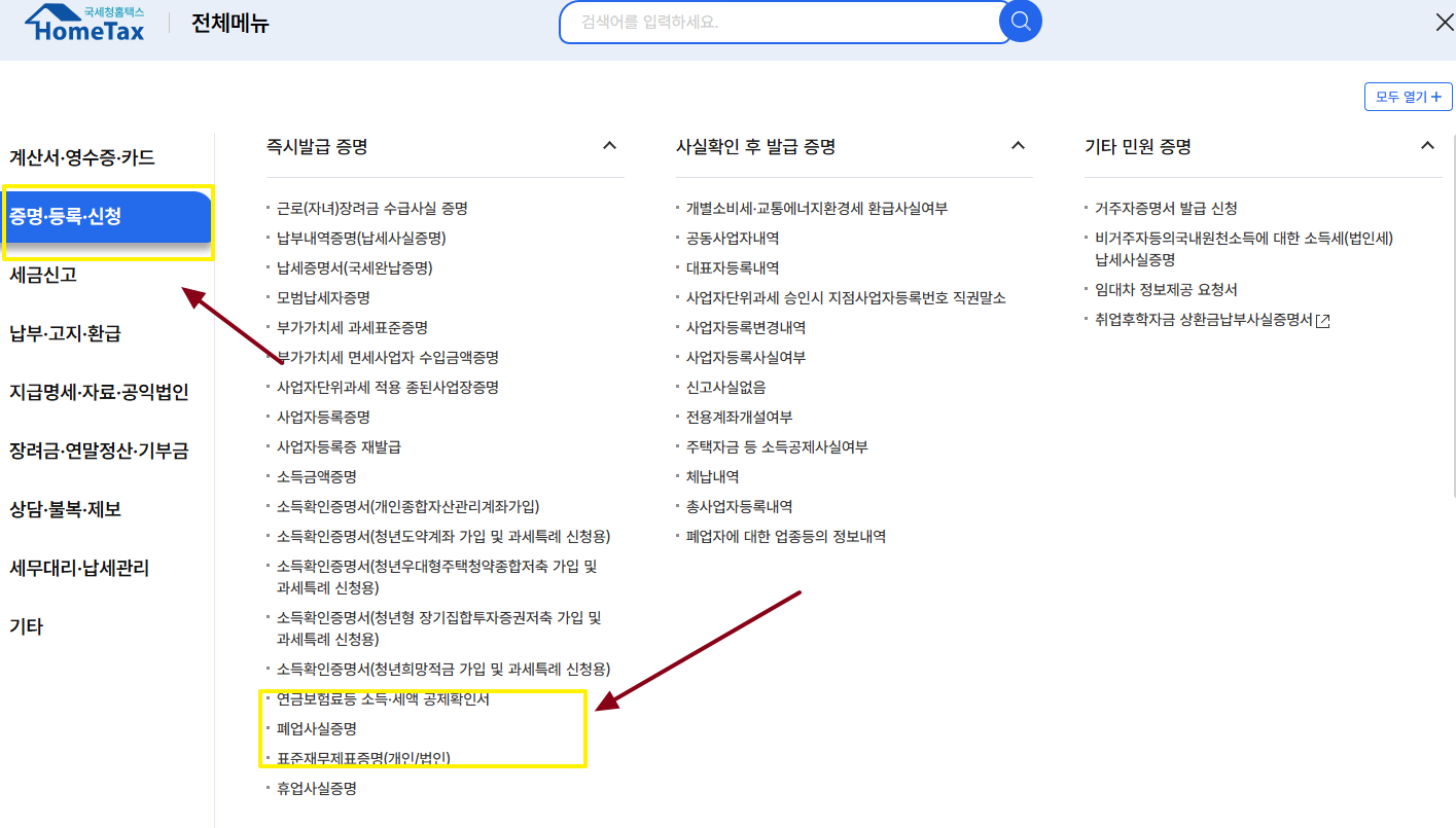 폐업사실증명원 온라인 발급 방법 2. - 홈택스 온라인